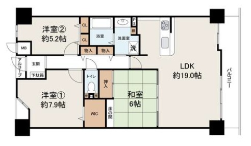 面積 専有面積84.93 ㎡ 測定方式 壁芯