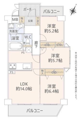 面積 専有面積69 ㎡ 測定方式 壁芯